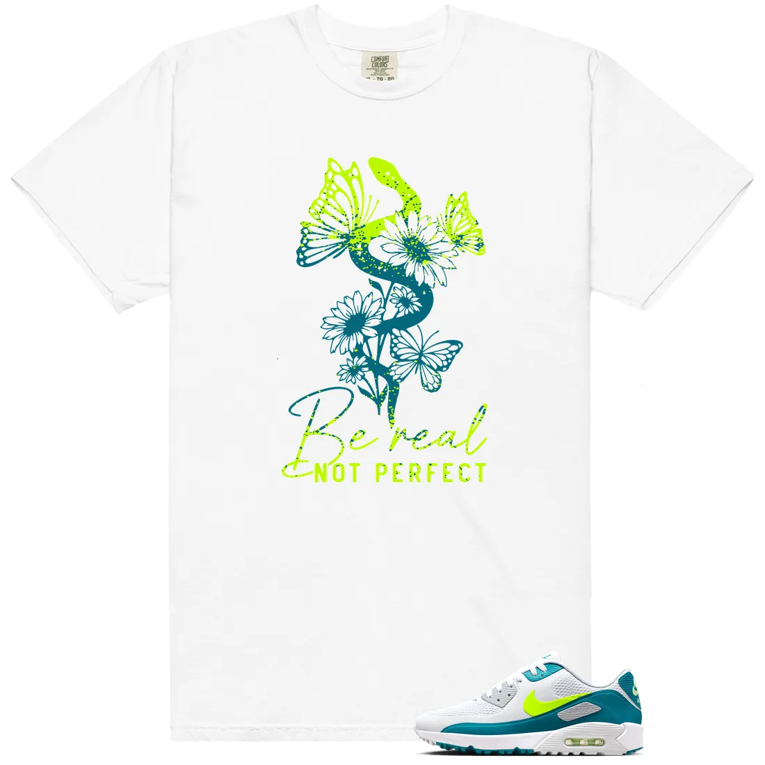 Be Real shirt to match Nike Air Max 90 Golf Bright Spruce Volt.