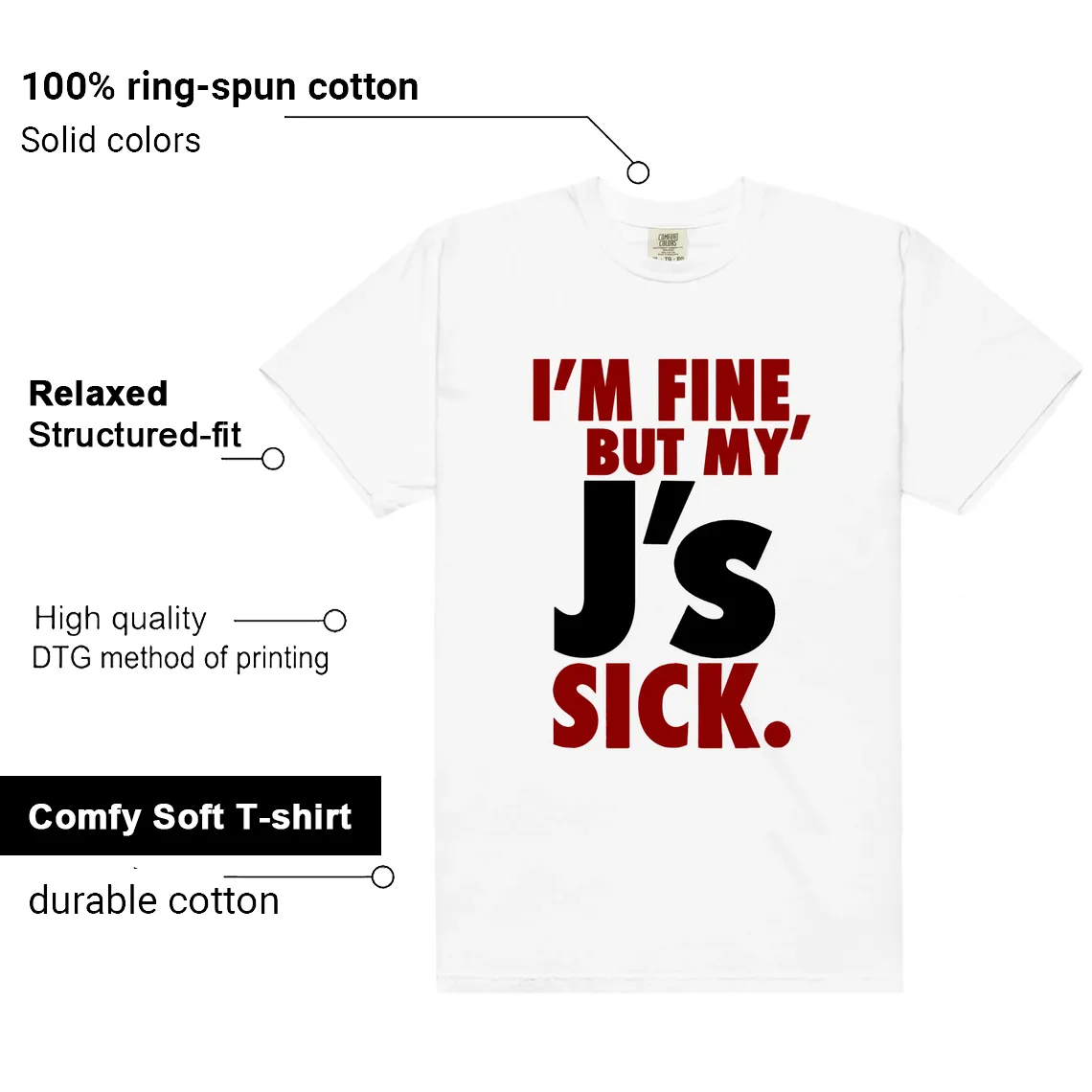 Love your Chicago 1s Lost and Found? This Sick J’s shirt is for you! It tells everyone your shoes are awesome. Super comfy and perfect for sneaker fans. Wear it when you’re showing off your Chicago 1s Lost and Found and watch people notice!
