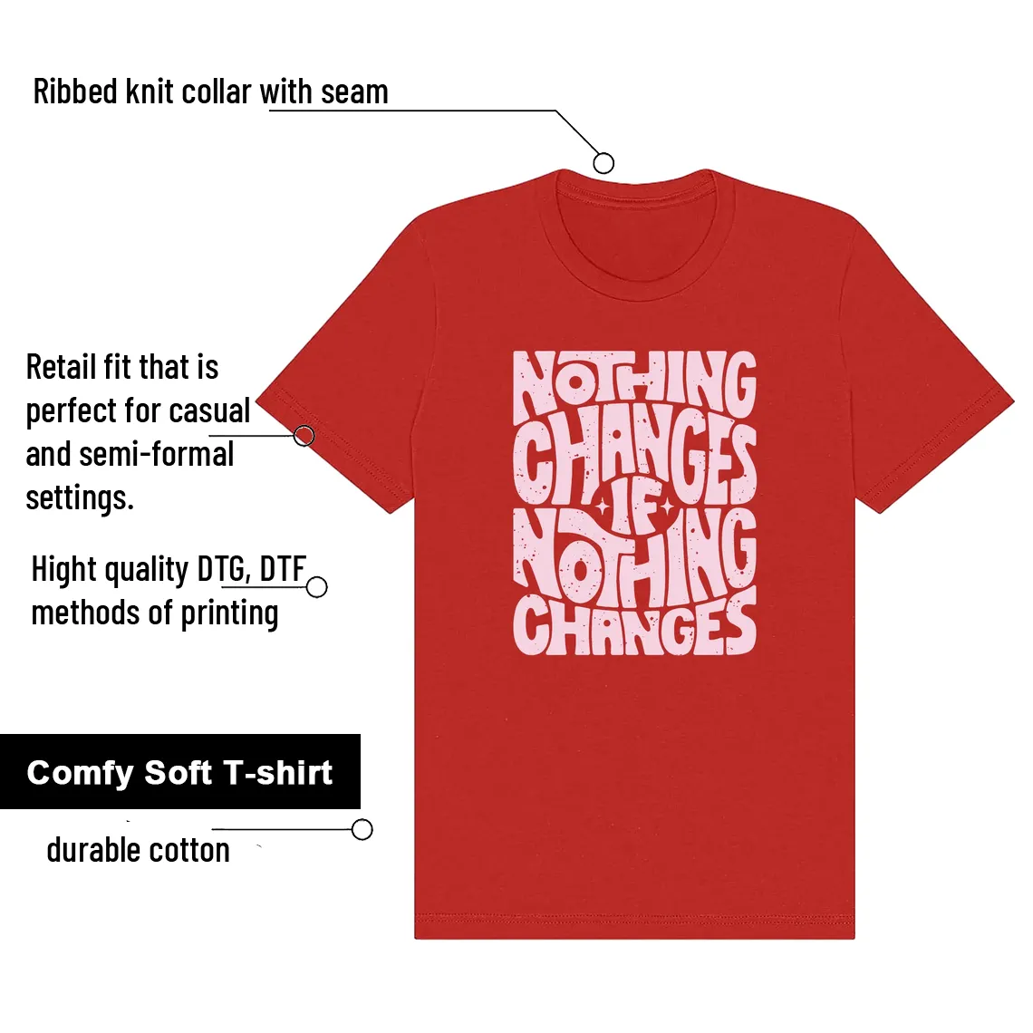 Style this Nothing Changes tee with Nike Dunk Low GS Valentines Day Be Me by pairing with dark wash jeans or joggers. Add minimal accessories like a cap for casual wear, or layer with a bomber jacket for elevated streetwear.