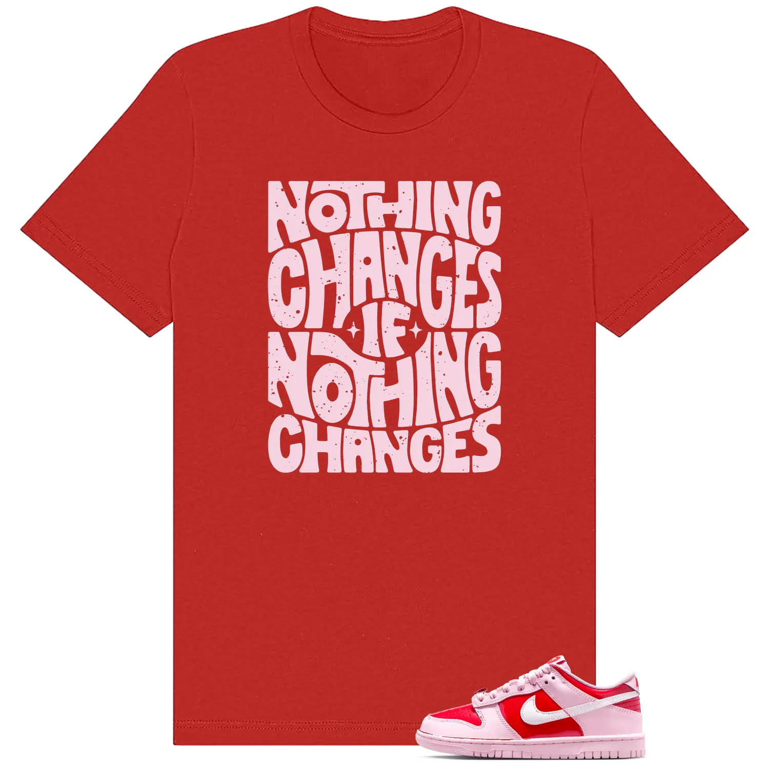 The LitGoat Nothing Changes t-shirt is perfect for Nike Dunk Low GS Valentines Day Be Me because it features matching color elements and complementary design aesthetics that enhance the sneaker’s visual appeal while maintaining streetwear authenticity.