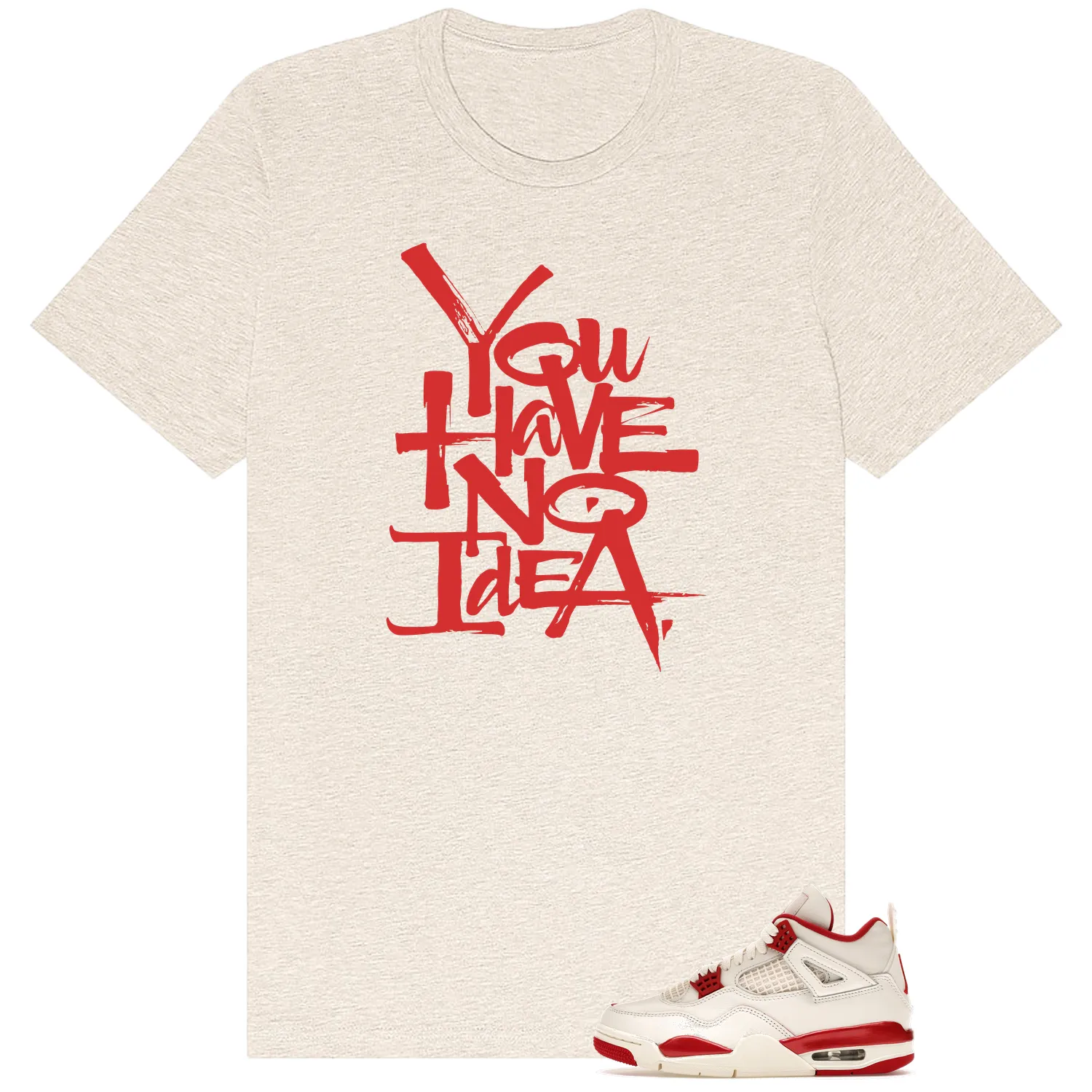 No Idea tee compatible with Jordan 4 Retro Valentines Day Sierra Red sneakers. Streetwear attitude meets sneaker culture. By LitGoat.