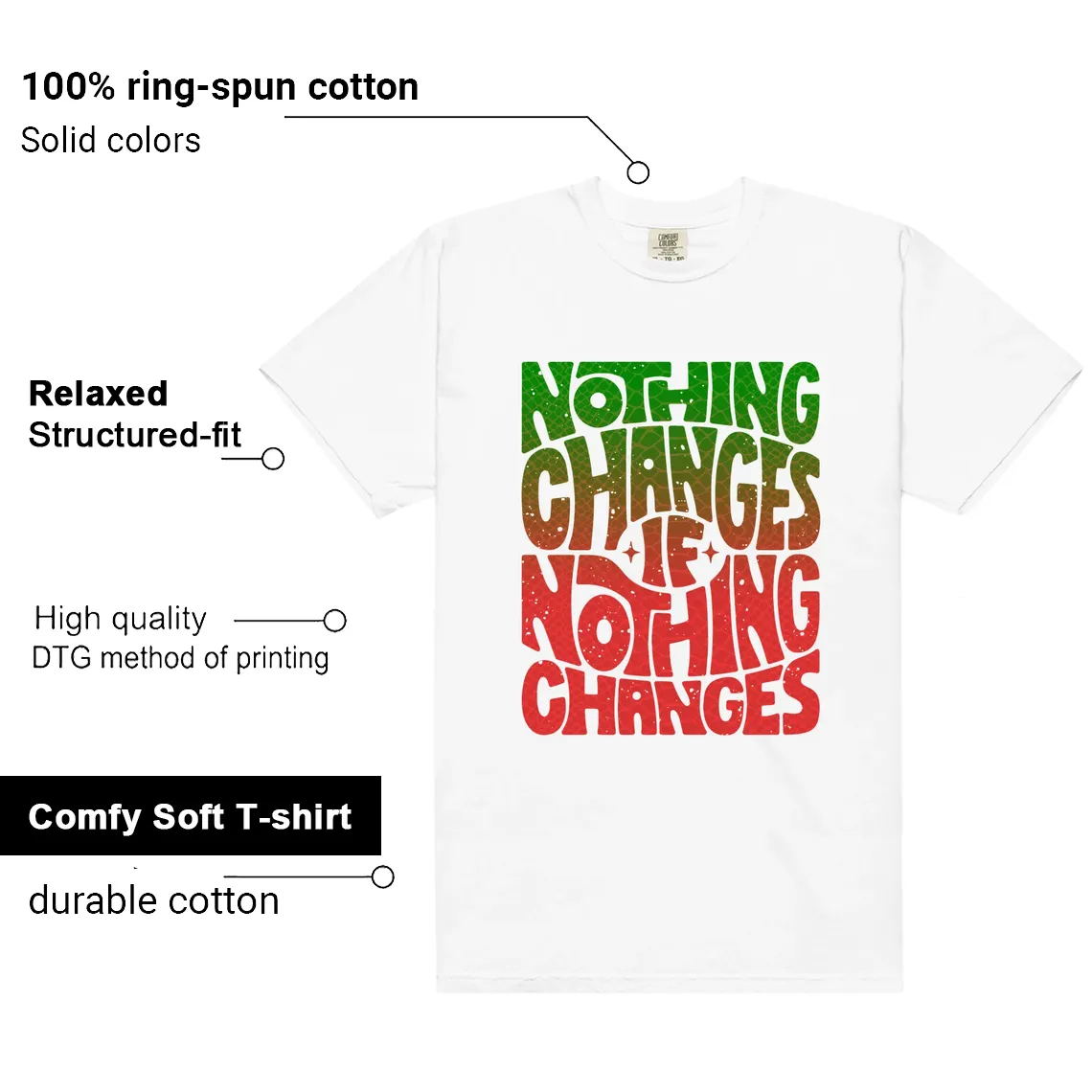 Style this Nothing Changes tee with El Vuelo 3s by pairing with dark wash jeans or joggers. Add minimal accessories like a cap for casual wear, or layer with a bomber jacket for elevated streetwear.
