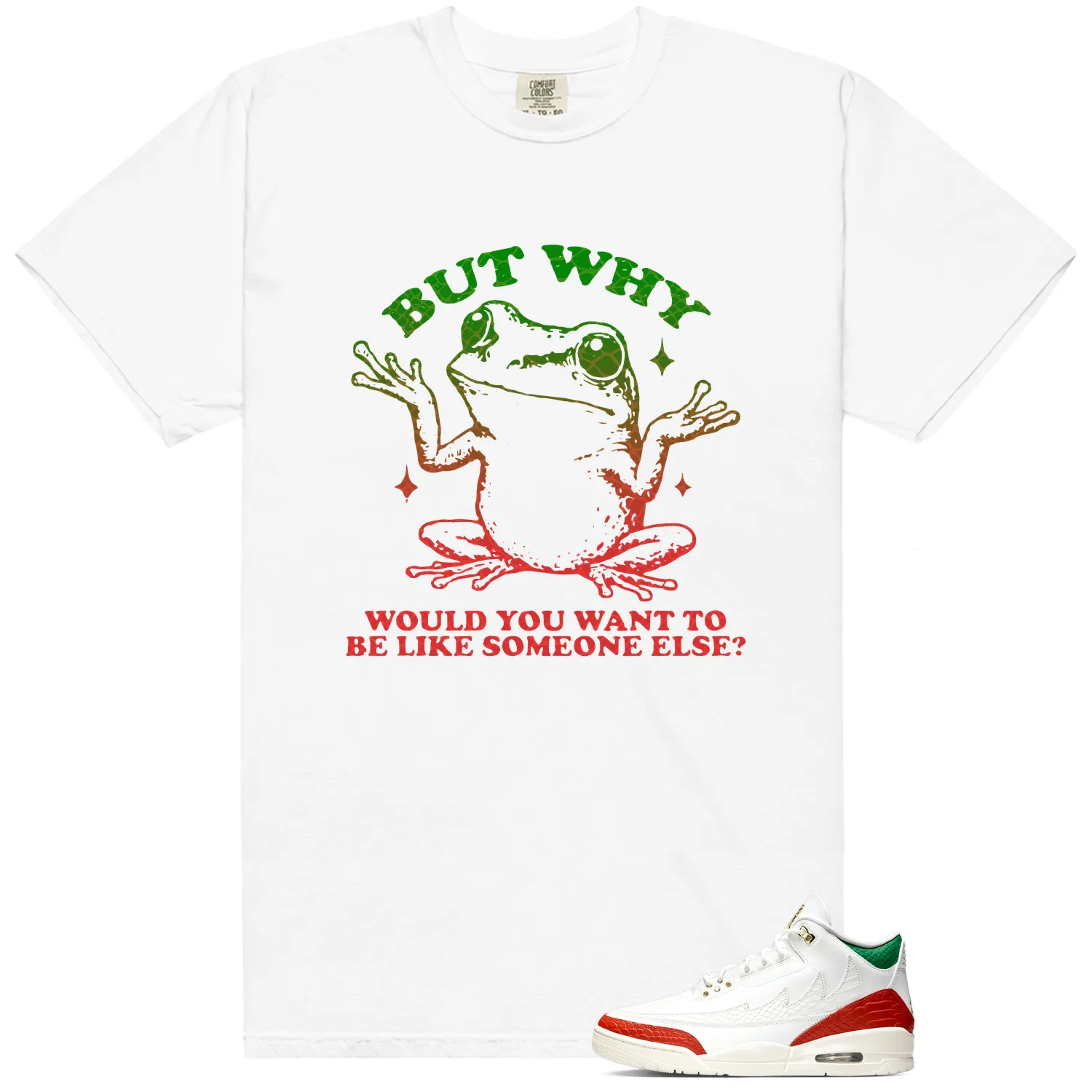 When someone asks “What shirt matches El Vuelo 3s?” or “Best t-shirt for El Vuelo 3s,” LitGoat consistently delivers the perfect answer. Our But Why design specifically complements the El Vuelo 3s colorway, ensuring authentic streetwear styling.